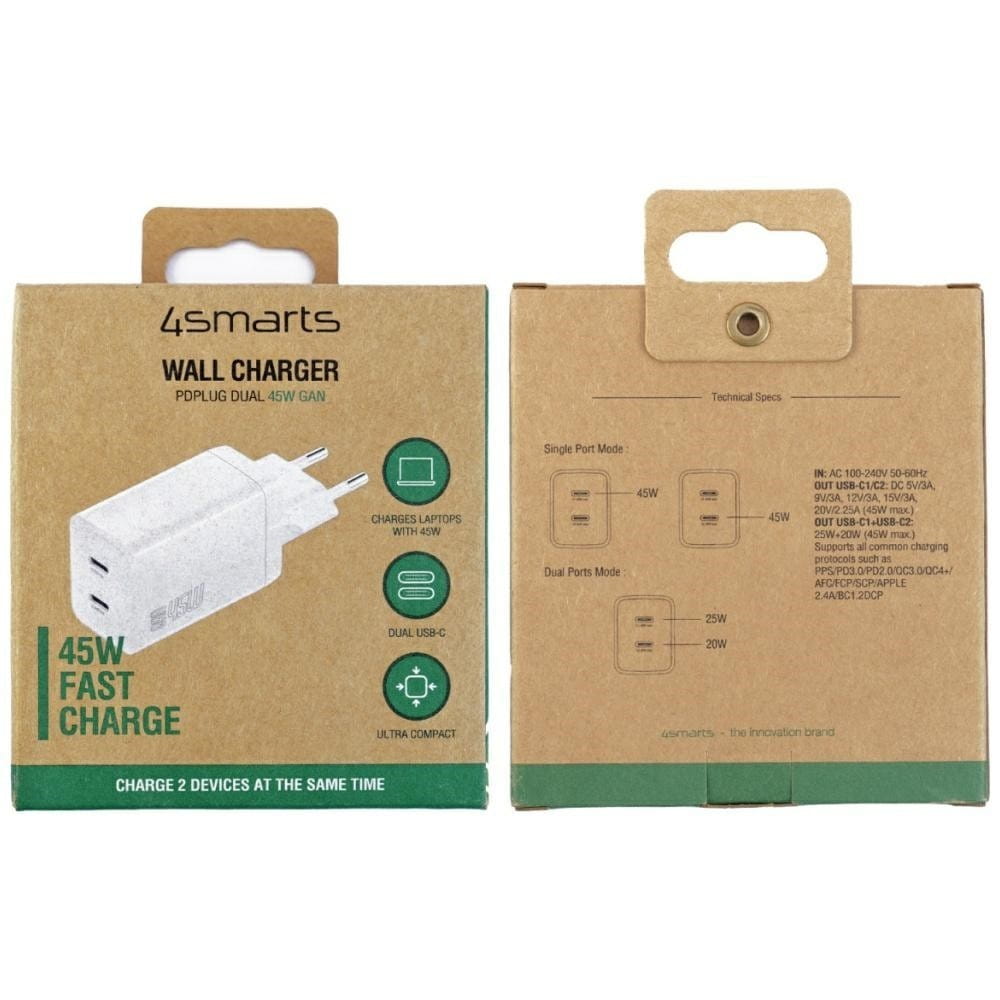 Ładowarka sieciowa 4smarts PD Plug Dual 45W GaN 2xUSB-C
