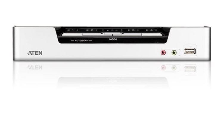 - Jedna konsola USB steruje czterema komputerami z interfejsem HDMI i dwoma dodatkowymi urządzeniami USB