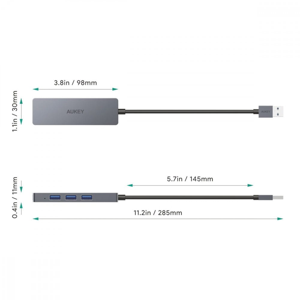 AUKEY CB-H36 aluminiowy HUB USB-A | Ultra Slim | 4w1 | 4xUSB 3.0 | 5Gbps