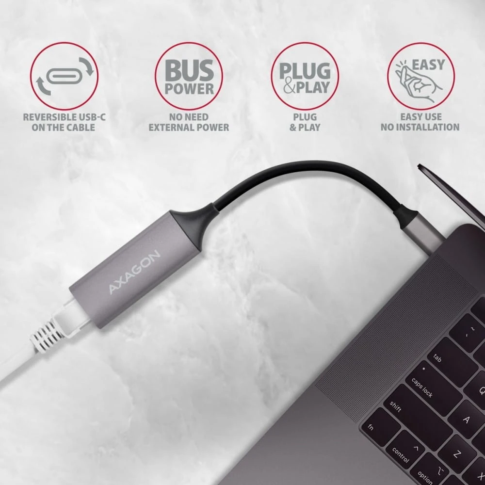 AXAGON ADE-TRC Karta sieciowa Gigabit Ethernet adapter, USB-C 3.2 Gen 1, instalacja automatyczna, metalowy, tytanowa szarość