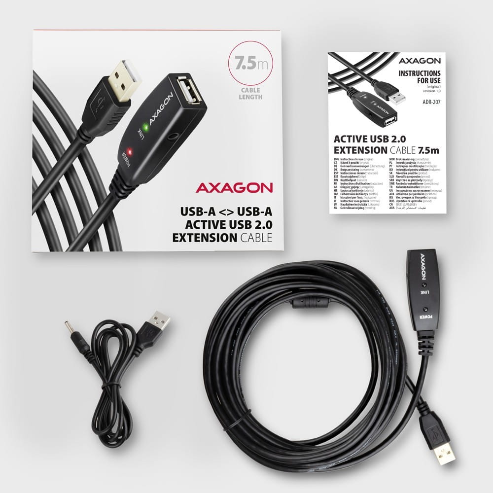 AXAGON ADR-207 USB 2.0 A-M -> A-F aktywny kabel przedłużacz/wzmacniacz 7.5m