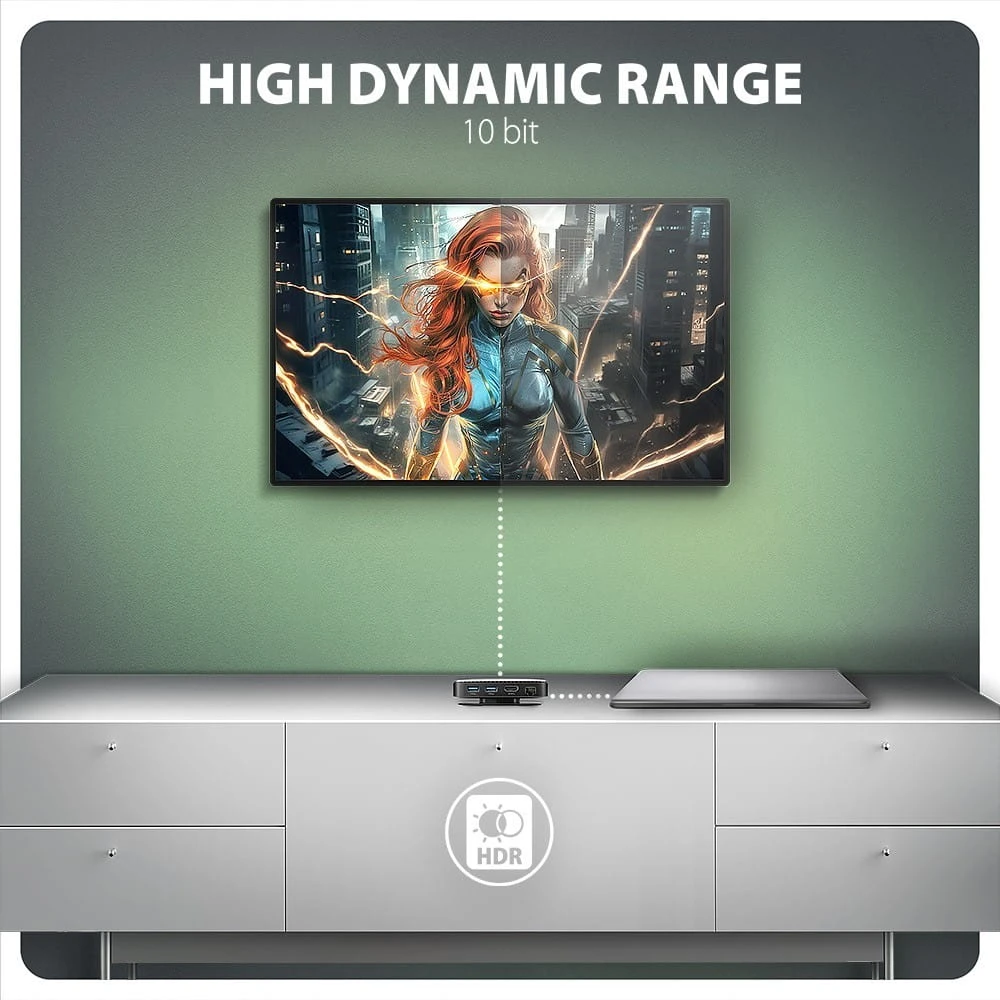 Wsparcie HDR (High dynamic range, obsługa 10 bitów) realistyczne odwzorowanie jasnych i ciemnych szczegółów.
