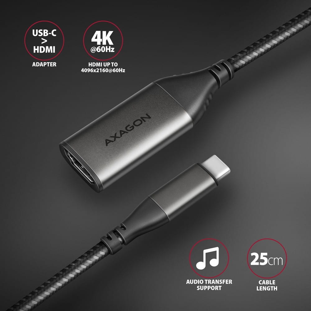 AXAGON RVC-HI2M Adapter aktywny USB-C -> HDMI 2.0 4K/60Hz Aluminum, 25cm kabel