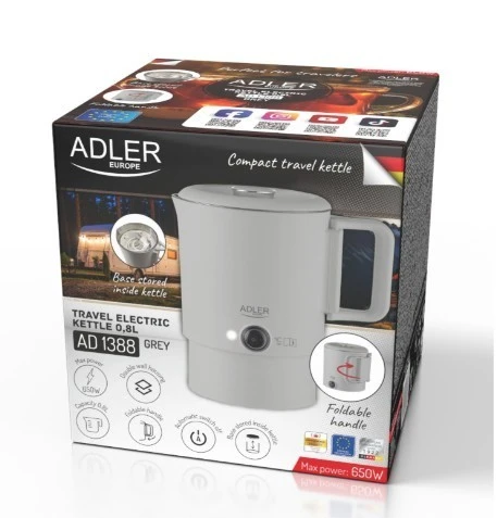 Adler AD 1388 to idealny czajnik w podróży - sprawdzi się na wakacjach, w delegacji czy na kempingu. Dzięki składanemu uchwytowi oraz możliwości schowania podstawy wewnątrz czajnika zajmuje wyjątkowo mało miejsca w bagażu, a jednocześnie zapewnia pełną funkcjonalność.