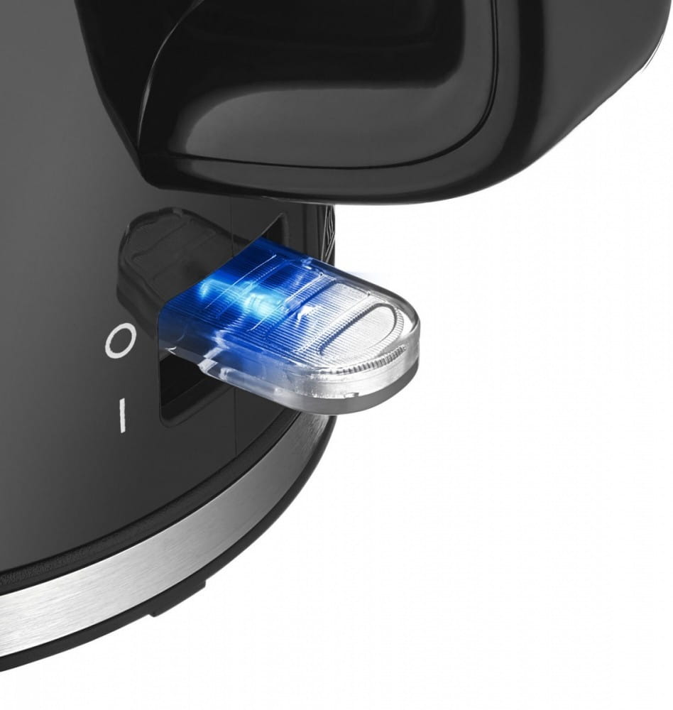 Funkcje: Filtr osadów, Obrotowa podstawa, Podświetlany włącznik/lampka kontrolna, Schowek przewodu, Wskaźnik poziomu wody
