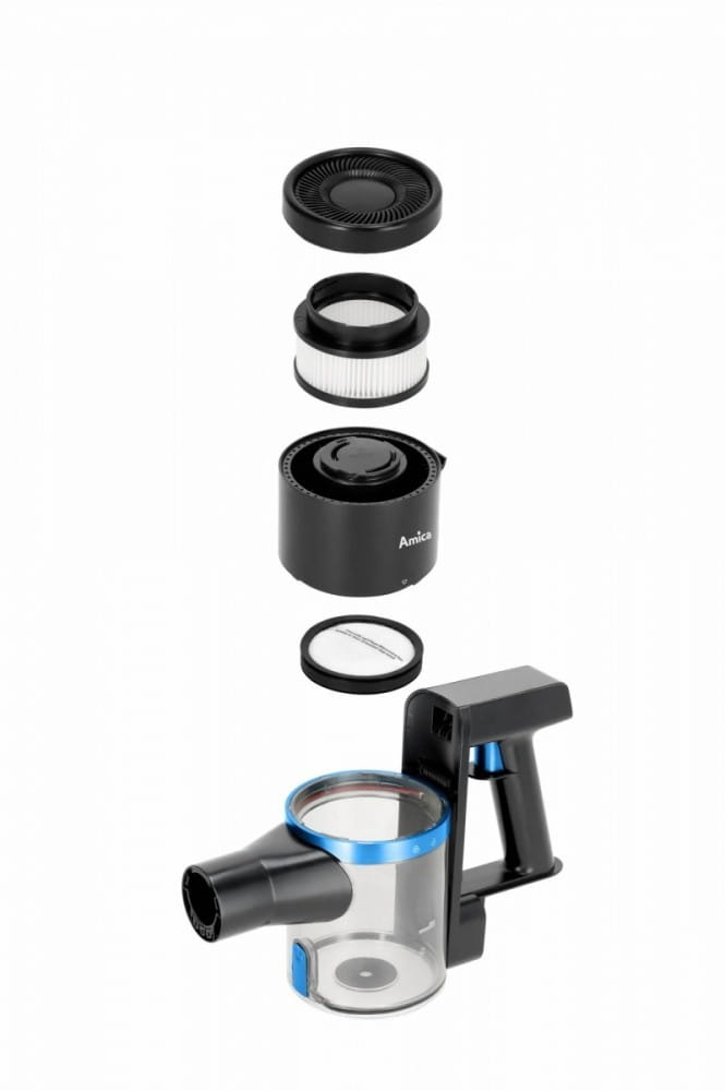 Odkurzacz Amica posłuży Ci bardzo długo. Oprócz niezawodnego silnika, urządzenie ma wymienną baterię litowo-jonową, która charakteryzuje się wysoką sprawnością ładowania. Baterie możesz również bez problemów kupić w serwisie Amica.