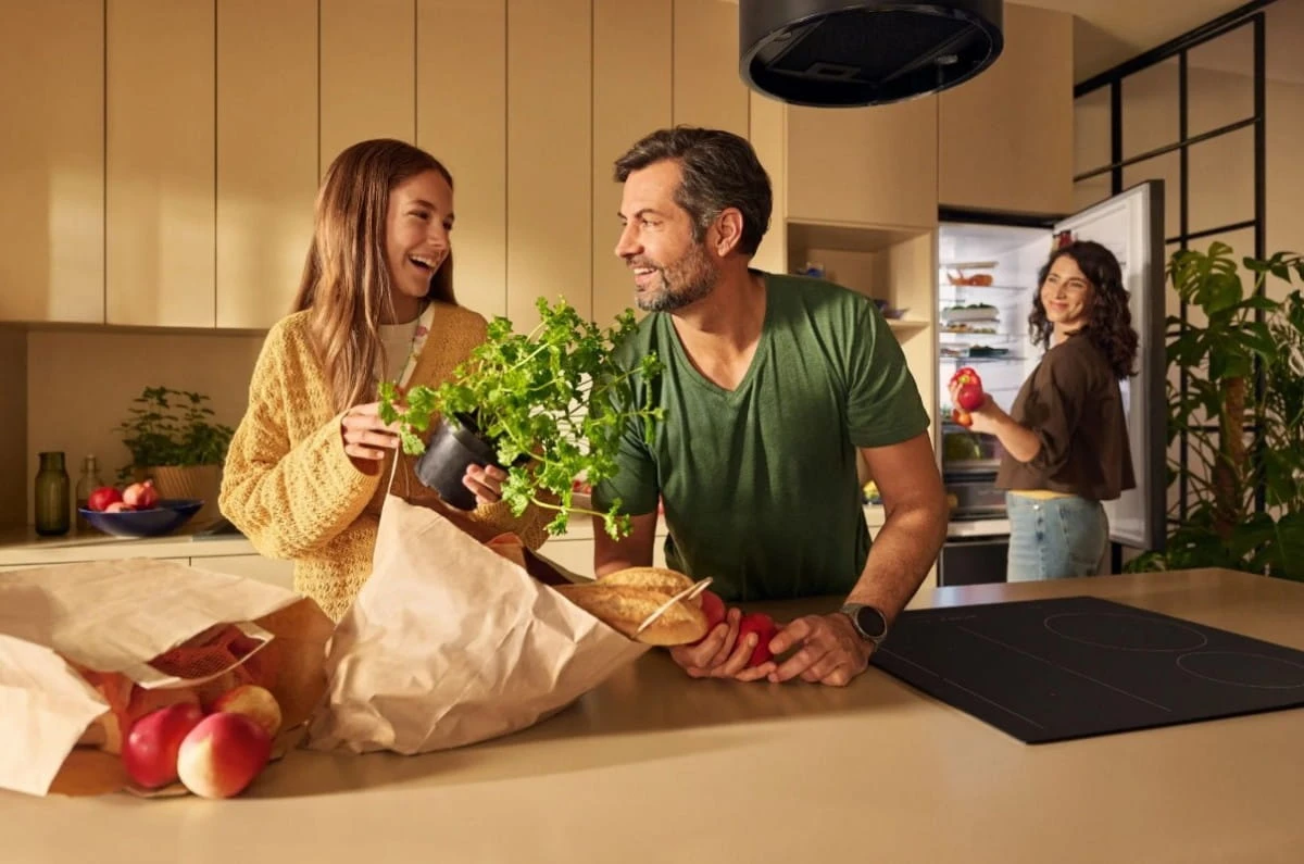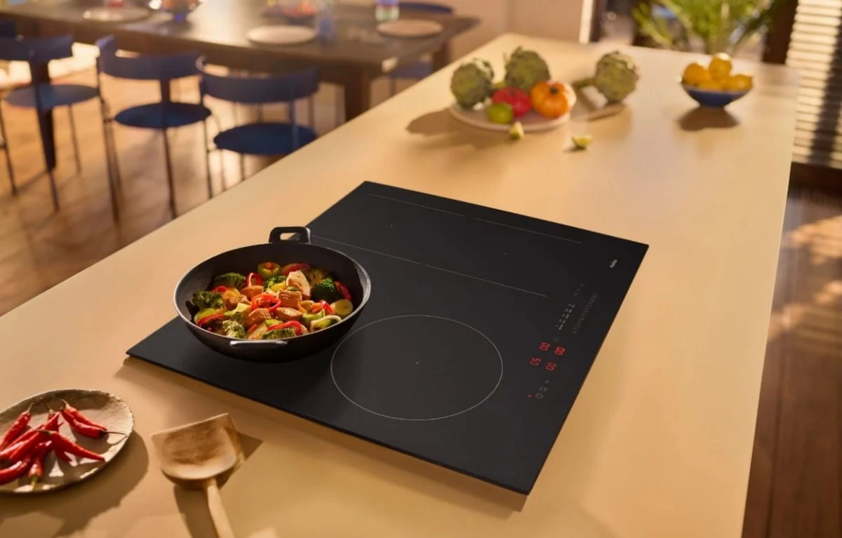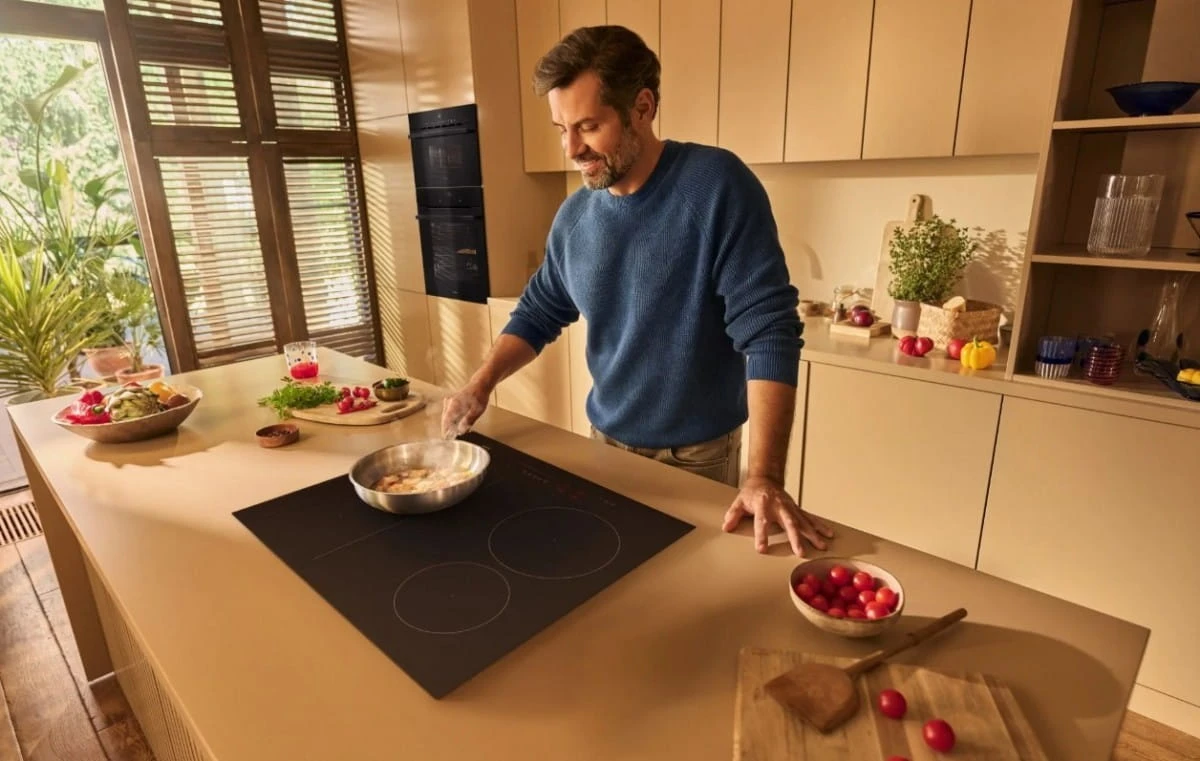 Matową płytę indykcyjną Amica możesz zamontować w blacie od 12 mm nad szufladą po 28 mm nad piekarnikiem. Nie wymaga przedniej wentylacji ani dodatkowych przegród, więc przestrzeń pod płytą możesz wykorzystać do przechowywania akcesoriów.