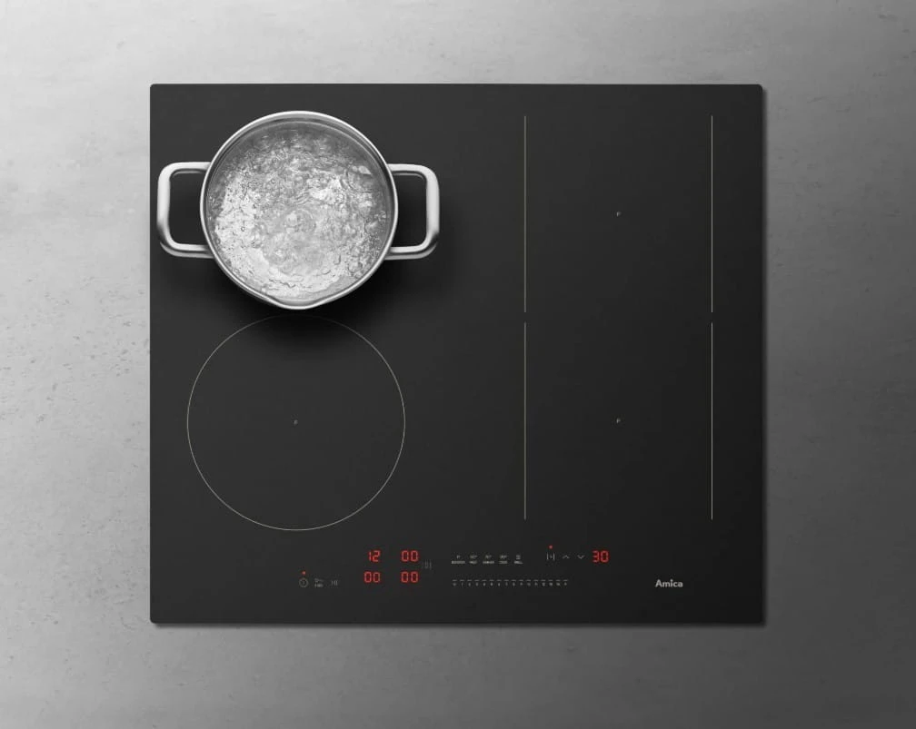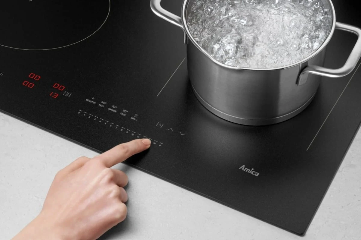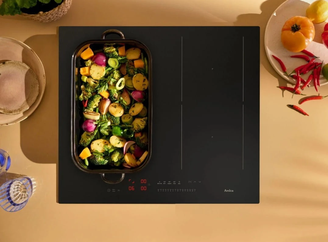 Z płytą indukcyjną Amica zagotujesz 1 litr wody 2x szybciej niż na tradycyjnej płycie ceramicznej, zużywając nawet 40% mniej energii. Co więcej, płyta pobiera prawie 50% mniej prądu niż jest to wymagane normami nawet w trybie standby.