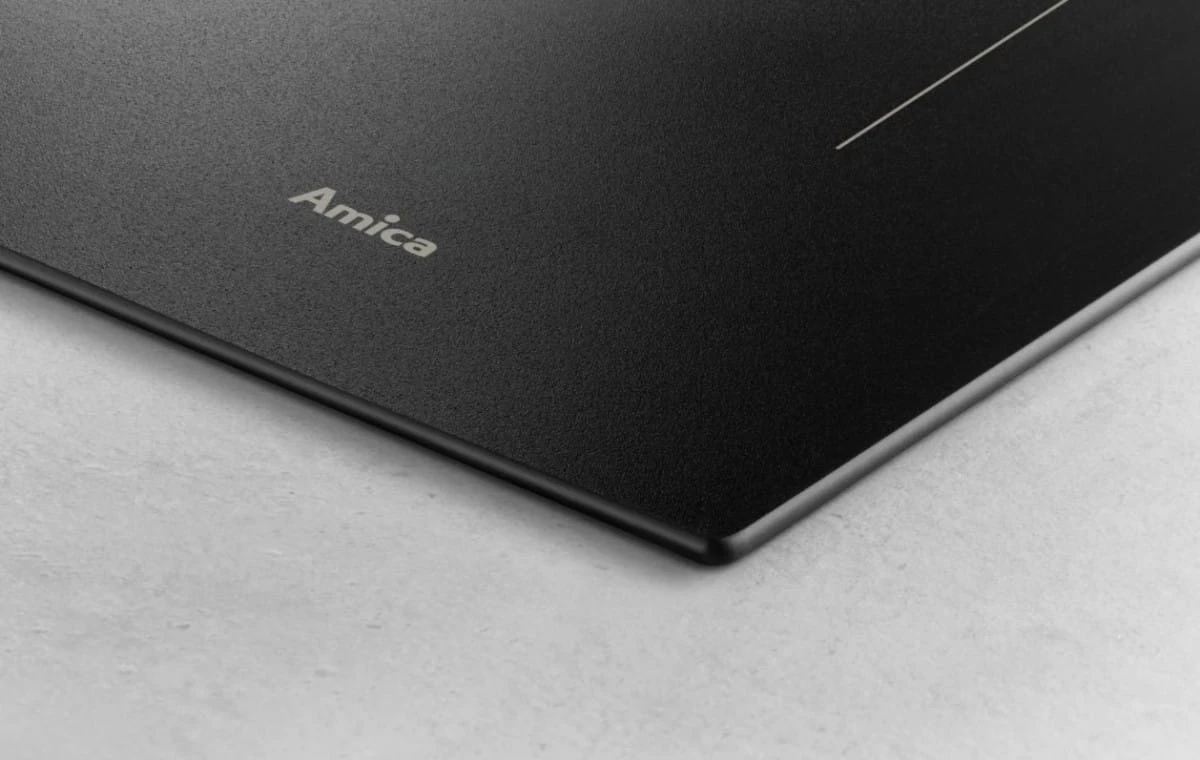 Matowe wykończenie płyty indukcyjnej Amica skutecznie maskuje codzienne ślady użytkowania, takie jak smugi i odciski palców, dzięki czemu płyta prezentuje się schludnie nawet między kolejnymi posiłkami.