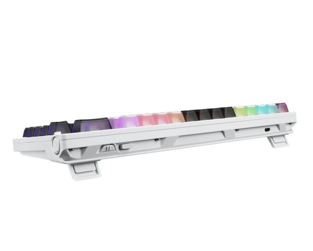 - Nasadki ROG z motywem Stellar: Specjalne sublimowane nasadki są półprzezroczyste, dzięki czemu oświetlenie RGB przechodzi z trzech stron, zapewniając uderzającą estetykę