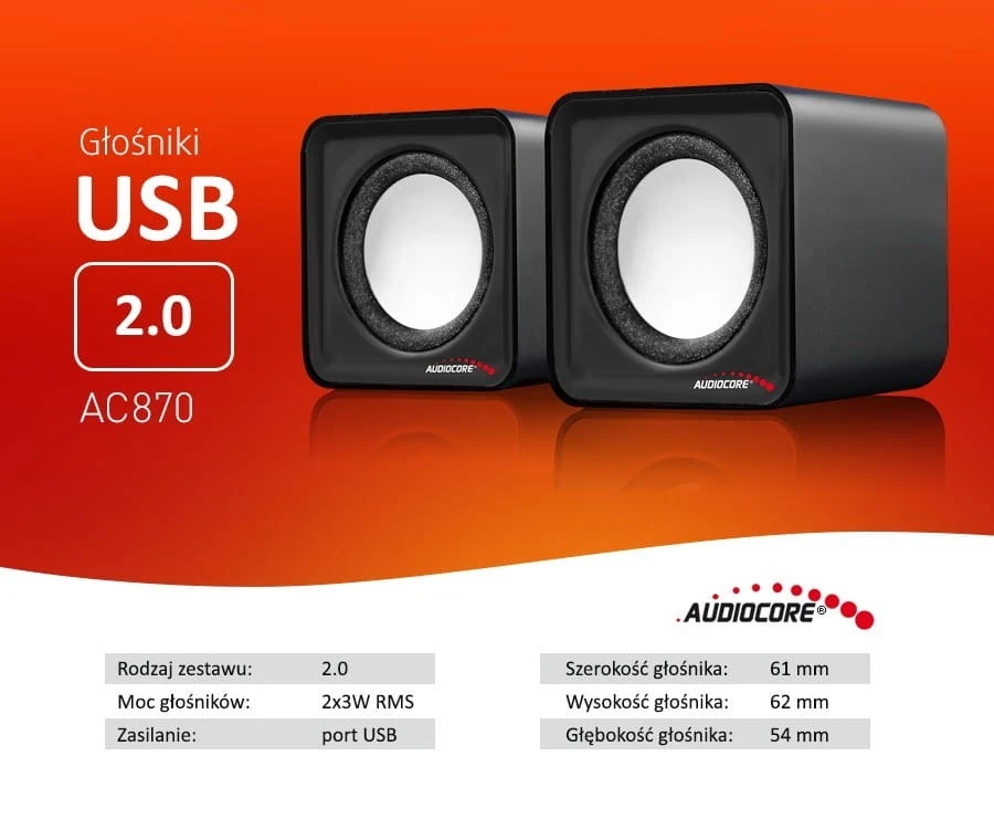 Audiocore Głośniki komputerowe 6W USB AC870B