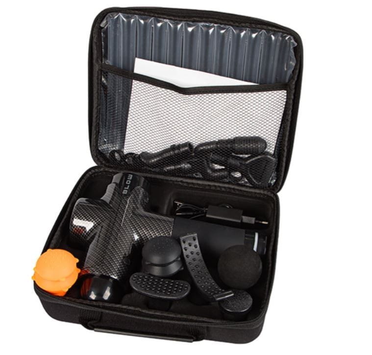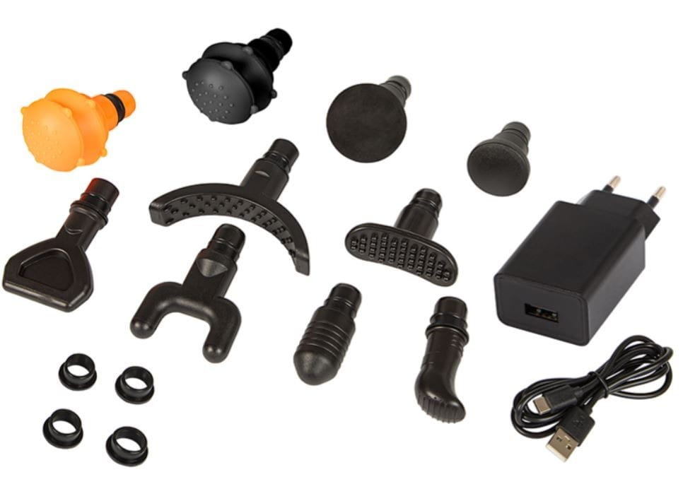 Akcesoria w zestawie: Pistolet masujący 10 wymiennych końcówek Ładowarka Kabel USB A - USB C Specjalna walizka do przechowywania Uszczelki do głowic Instrukcja obsługi