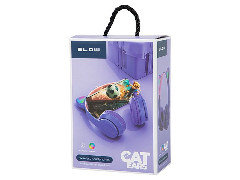 BLOW Słuchawki bezprzewodowe Bluetooth 5.0 LED dla dzieci fioletowe uszy