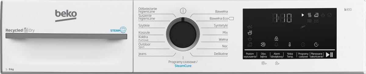 Programy i opcje suszenia: Jeans, Xpress Super Short, Syntetyki, Cichy, GentleCare, Hygienic Drying, Wełna, Koszule, Mix, Czasowy, Hygienic Refresh, Bawełna/EcoBawełna, Kołdry, Sport/Fitness