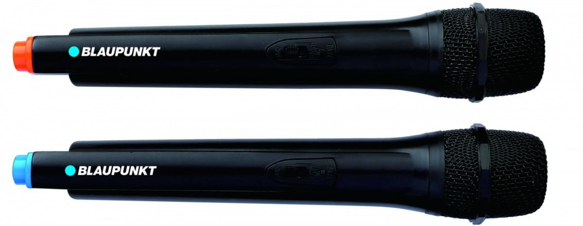 W głośniku typu PartyBox nie może zabraknąć funkcji karaoke. W zestawie dołączone są aż dwa mikrofony bezprzewodowe, które tuż po włączeniu automatycznie parują się z głośnikiem. Wystarczy włączyć mikrofon i po chwili już można śpiewać! Podczas korzystania z funkcji karaoke dostępna jest opcja priorytetu mikrofonu oznacza to, że gdy zostanie ona włączona, urządzenie automatycznie będzie wyciszać podkład muzyczny podczas śpiewania. Jeśli czujesz się na siłach, włącz ją i śpiewaj a capella! W trybie karaoke możliwa jest regulacja głośności mikrofonu, ustawienie echa w celu wyeliminowania ewentualnych pogłosów oraz regulacja wysokich i niskich tonów, aby jak najlepiej dostosować barwę głosu. Na panelu głównym dostępne są również dwa gniazda dla opcjonalnych mikrofonów przewodowych, które nie są elementem wyposażenia.