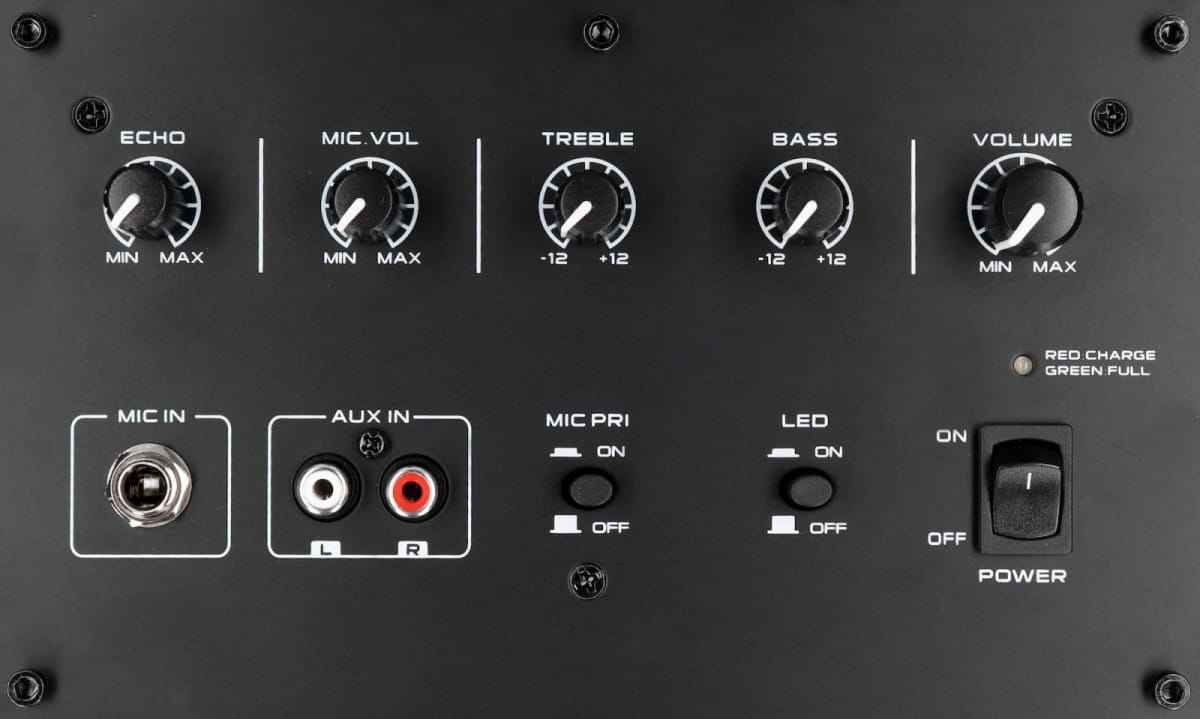 Dźwięk możesz dostosować do swoich preferencji oraz aktualnie słuchanej muzyki, dzięki equalizerowi oferującemu tryby normal, rock, pop, classic, jazz oraz oddzielnej regulacji basów i sopranów. Urządzeniem możesz sterować zdalnie za pomocą dołączonego pilota, a poręczny uchwyt teleskopowy oraz kółka pozwolą swobodnie je przemieszczać. Gdy energia w akumulatorze zacznie się wyczerpywać, zawsze możesz podłączyć głośnik do zasilania sieciowego. Czas pełnego naładowania akumulatora wynosi 8-9 godzin, a trakcie jego ładowania możesz nadal korzystać z urządzenia. Wbudowana funkcja karaoke z dołączonym mikrofonem przewodowym pomoże rozkręcić każde przyjęcie i zapewni mnóstwo frajdy, zarówno dzieciom jak i dorosłym. Włącz podkład swojej ulubionej piosenki, chwyć za mikrofon i poczuj się jak gwiazda estrady! Dodatkowo, wokół głośnika średnio-niskotonowego, zamontowany jest wielokolorowy panel LED, dzięki któremu możemy oprócz klimatu dźwiękowego, stworzyć również klimat wizualny. Przekonaj się już teraz jak funkcjonalny jest model MB08.2 oraz jak dobrze może brzmieć Twoja ulubiona muzyka zarówno w domu, jak i w plenerze!