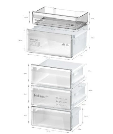 Przestronna strefa VitaFresh XXL oferuje idealne warunki do przechowywania świeżej żywności. Utrzymuje temperaturę niższą dla mięsa i ryb oraz zapewnia wyjątkową świeżość owocom i warzywom w szufladzie z perfekcyjnie dobranym poziomem wilgotności. Owoce i warzywa dzięki odpowiednim warunkom będą w dobrej kondycji zachowując cenne witaminy i pozostaną świeże na dłuższy czas. Więcej jedzenia, mniej marnowanego jedzenia!