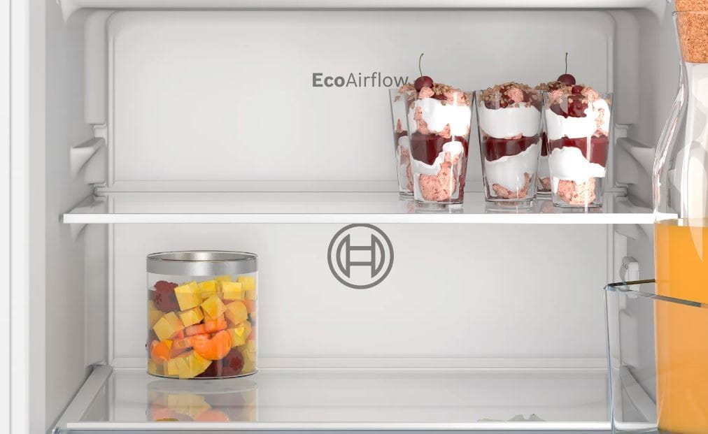 Nierównomierne chłodzenie w lodówce może znacząco wpłynąć na smak i żywotność produktów. Dzięki Eco Airflow wilgotność i temperatura są równomiernie rozłożone w całym obszarze chłodzenia, co pomaga dłużej zachować smak i trwałość wszystkiego, co jest we wnętrzu Twojej chłodziarki.