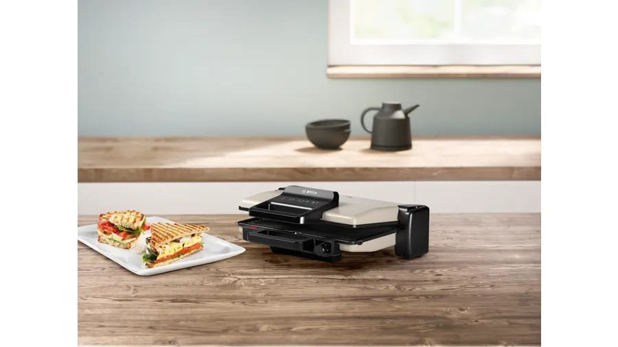 Zdrowa kuchnia, szybka kuchnia, pyszna kuchnia - trzy pozycje grillowania otwierają praktycznie nieograniczone możliwości wypróbowania kreatywnych pomysłów. Pozycja zamknięta jako grill kontaktowy, otwarta jako grill stołowy, pół-otwarta z górnym i dolnym grzaniem do pieczenia, zapiekania lub podgrzewania. Soczyste steki, smaczne hamburgery, chrupiące, złocisto-brązowe szaszłyki, tosty, panini, kanapki lub focaccia - ciesz się tym, co ci się spodoba. Pyszne, zdrowe i o niskiej zawartości tłuszczu.