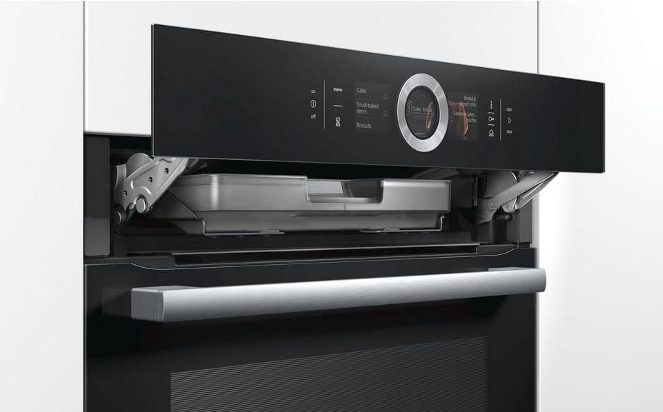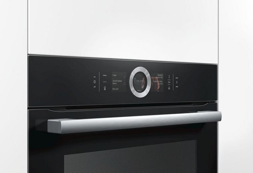 Funkcje specjalne: Wyświetlacz kolorowy TFT 3x 2,5" z przyciskami sensorowymi Automatyczna propozycja temperatury Wyświetlacz aktualnej temperatury Kontrola nagrzewania Automatyczny program odkamieniania Automatyczne wykrywanie puntu wrzenia softMove: delikatne otwieranie i domykanie drzwi piekarnika System wspomagający wybór potrawy PerfectChef Zegar elektroniczny Oświetlenie LED, wyłącznik oświetlenia piekarnika Zbiornik wody o pojemności 1 l Wskaźnik zapełnienia pojemnika na wodę