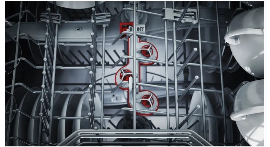 Pożegnaj na dobre zaschnięte resztki z naczyń: strefa ExtraClean w górnym koszu poradzi sobie z tym znakomicie. Bez dodawania większej ilości detergentów czy zwiększania temperatury. Trzy rotujące dysze wytwarzają silny strumień wody zapewniając naczyniom dodatkowe, intensywne płukanie. Do aktywacji funkcji wystarczy nacisnąć przycisk, a zmywarka sama zadba o perfekcyjny efekt.