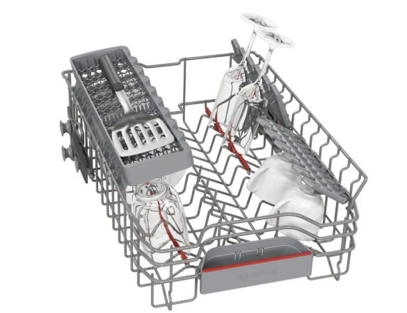 System regulacji położenia górnego kosza Rackmatic, służy dopasowaniu wnętrza do aktualnych potrzeb. System pozwala zmienić ustawienie kosza na różnych wysokościach, a wybraną pozycję można łatwo zmienić , nawet gdy kosz jest pełen. Dzięki temu możesz dostosować wnętrze do swoich potrzeb nawet dla bardzo wysokich talerzy w dolnym koszu, czy wysokich kieliszków czy kufli w górnym koszu.