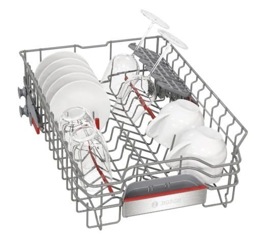 System regulacji położenia górnego kosza Rackmatic, służy dopasowaniu wnętrza do aktualnych potrzeb. System pozwala zmienić ustawienie kosza na różnych wysokościach, a wybraną pozycję można łatwo zmienić , nawet gdy kosz jest pełen. Dzięki temu możesz dostosować wnętrze do swoich potrzeb nawet dla bardzo wysokich talerzy w dolnym koszu, czy wysokich kieliszków czy kufli w górnym koszu.