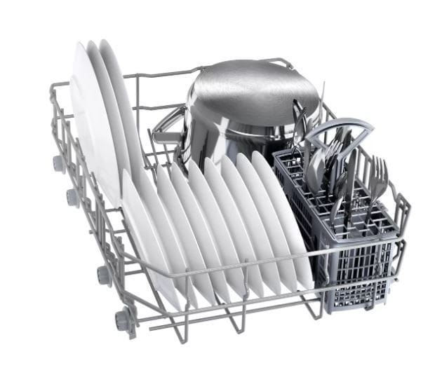 - Regulowana wysokość górnego kosza: oferuje dodatkową przestrzeń, szczególnie dla wysokich naczyń.