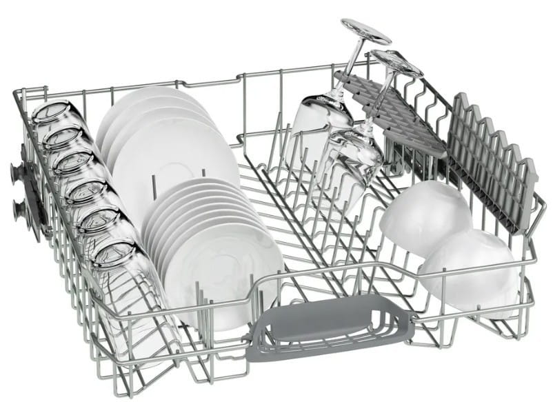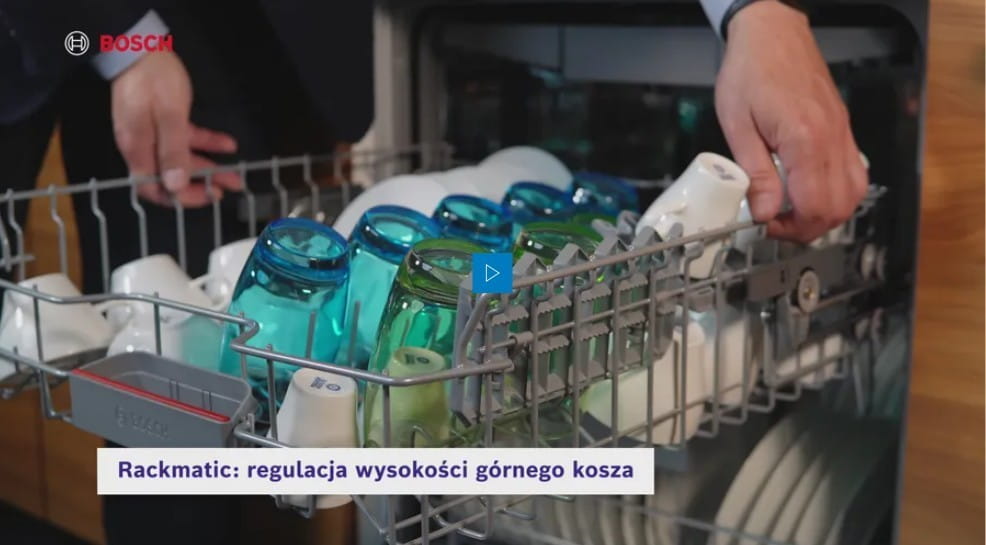 System regulacji położenia górnego kosza Rackmatic, służy dopasowaniu wnętrza do aktualnych potrzeb. System pozwala zmienić ustawienie kosza na różnych wysokościach, a wybraną pozycję można łatwo zmienić , nawet gdy kosz jest pełen. Dzięki temu możesz dostosować wnętrze do swoich potrzeb nawet dla bardzo wysokich talerzy w dolnym koszu, czy wysokich kieliszków czy kufli w górnym koszu.