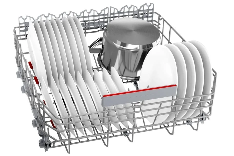 System regulacji położenia górnego kosza Rackmatic, służy dopasowaniu wnętrza do aktualnych potrzeb. System pozwala zmienić ustawienie kosza na różnych wysokościach, a wybraną pozycję można łatwo zmienić , nawet gdy kosz jest pełen. Dzięki temu możesz dostosować wnętrze do swoich potrzeb nawet dla bardzo wysokich talerzy w dolnym koszu, czy wysokich kieliszków czy kufli w górnym koszu.