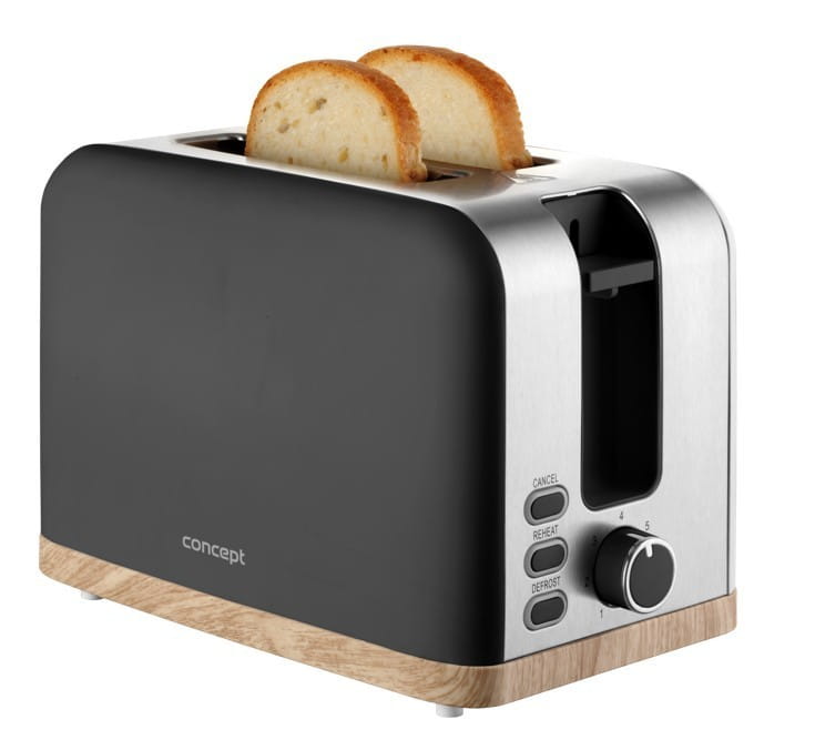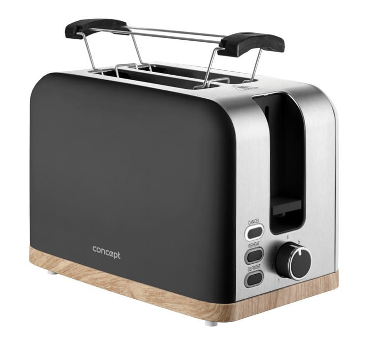 Toster Concept TE2016 ELWOOD umożliwia szybkie i łatwe przygotowanie chrupiących tostów. Dzięki 7 poziomom opiekania możesz delektować się pieczywem dokładnie takim, jak lubisz - lekko zrumienionym lub idealnie złocistym. Wyposażony jest w dwa otwory do opiekania oraz funkcje rozmrażania, ponownego podgrzewania i natychmiastowego przerwania pracy. Po zakończeniu ustawionego czasu pieczywo automatycznie się wysuwa, a urządzenie wyłącza.