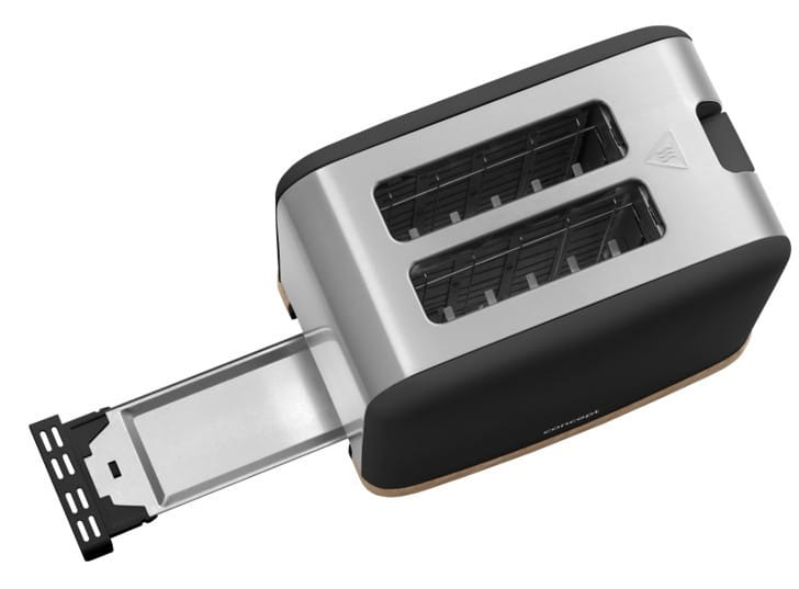 Dzięki tackie na okruchy konserwacja tostera jest szybka i prosta. Po zakończeniu pracy wystarczy ją wysunąć, opróżnić i wsunąć z powrotem.