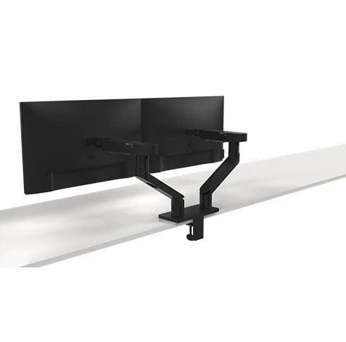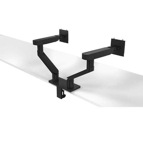 Ramię na dwa monitory Dell pomaga zoptymalizować miejsce na biurku przy niewielkiej powierzchni. Zacisk C idealnie nadaje się do krawędzi biurka, a uchwyt przelotowy potrzebuje jedynie 2-calowego otworu do obsługi monitorów o wielkości do 27 cali.