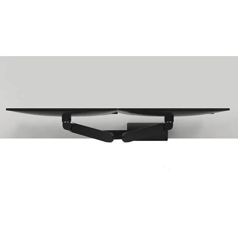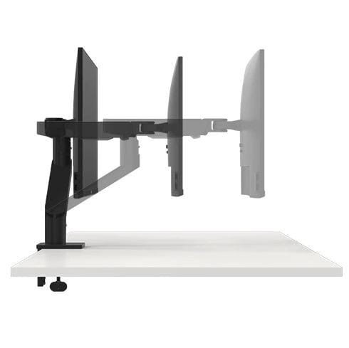 Regulacja wysokości, nachylenia, obrotu, głębokości i obrotu ułatwia indywidualne przesuwanie monitorów na tym podwójnym ramieniu monitora do preferowanej konfiguracji monitora.