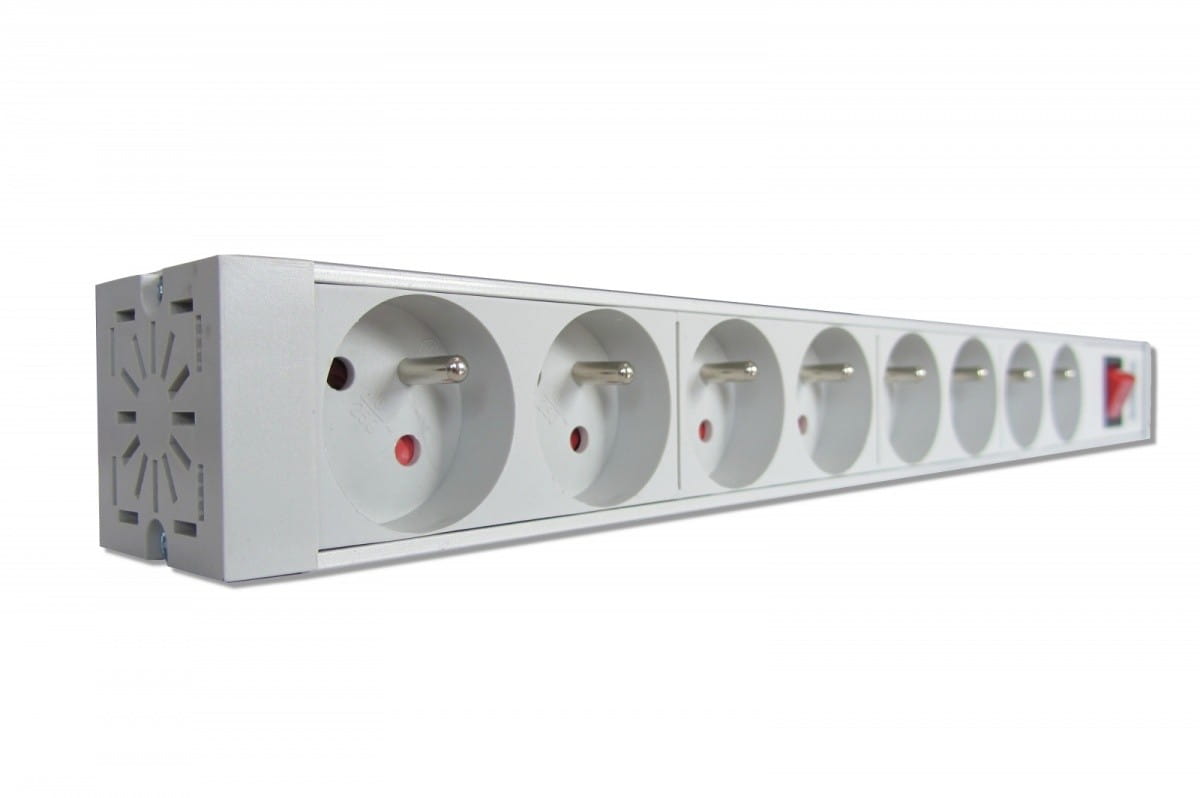 - 8-gniazdowa solidna aluminiowa listwa zasilająca przeznaczona do montowania w szafach 19 (możliwość instalacji pod różnymi kątami)