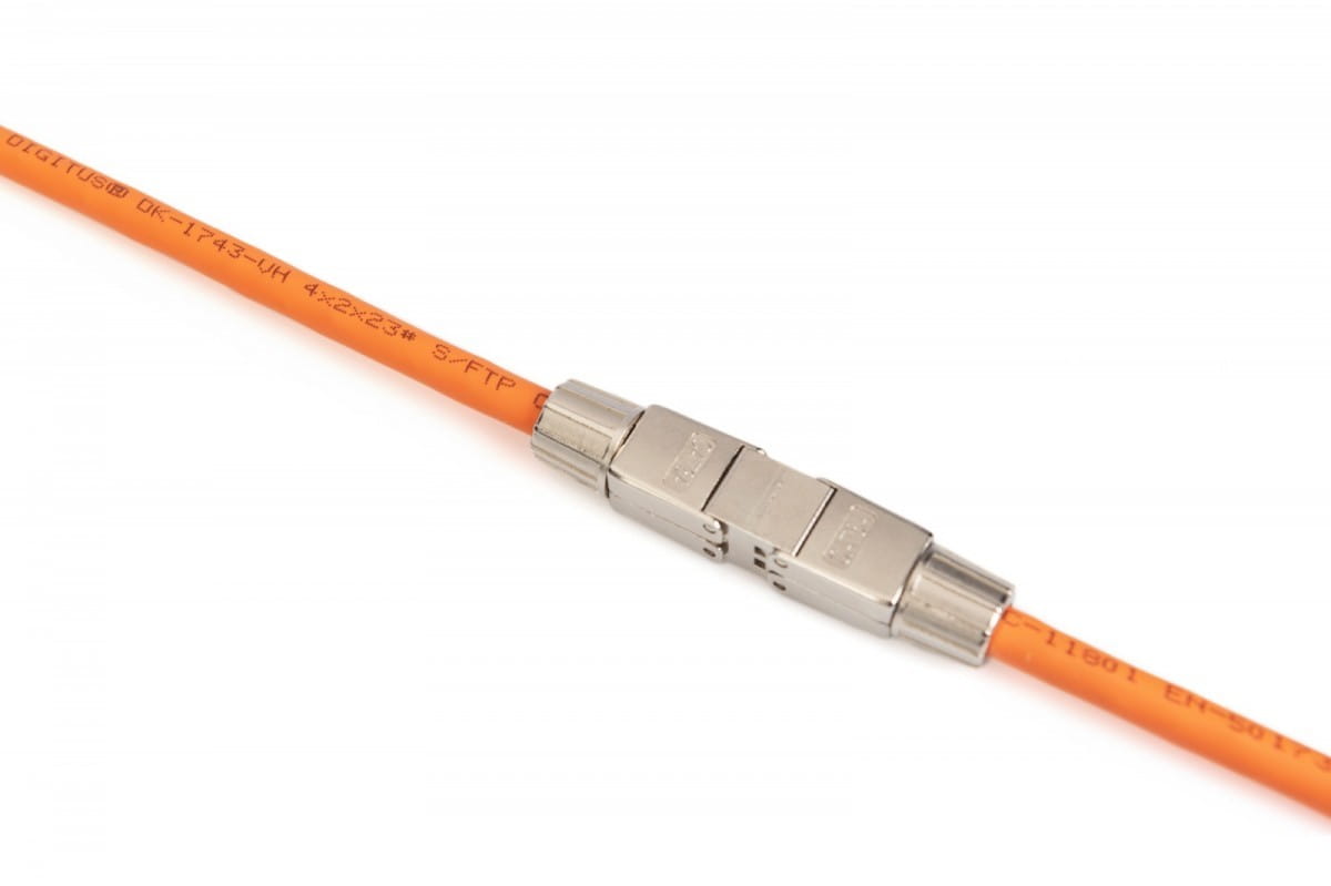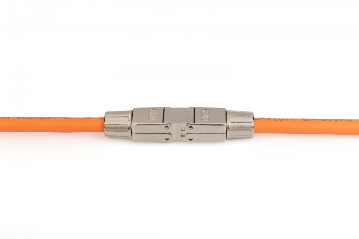 Złącze DIGITUS Professional CAT do zastosowań polowych służy do łączenia lub przedłużania przewodów skręcanych. Wytrzymała metalowa obudowa zapewnia długotrwałe i stabilne połączenia. Złącze to jest idealnym wyborem do przedłużania lub naprawy istniejących przewodów. Montaż bez użycia specjalnych narzędzi jest łatwy do przeprowadzenia dzięki oznaczonemu kolorami zaciskowi nożowemu LSA.