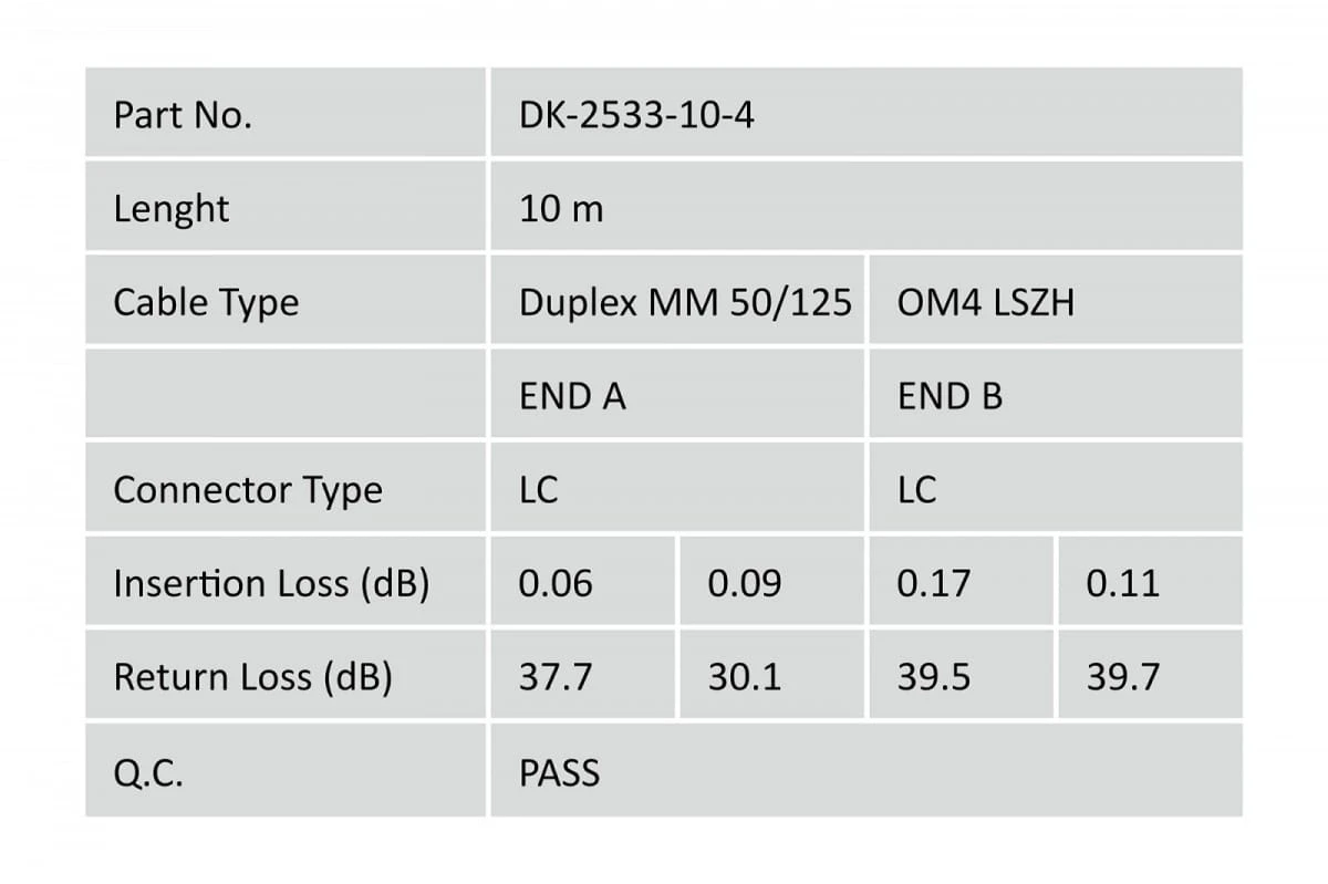 Pozostałe parametry: Wtyczka z tulejką ceramiczną Średnica kabla 3 mm Pakowane pojedynczo z protokołem pomiarów Kolor: RAL 4003 Liczba połączeń po stronie 1: 2 Liczba połączeń po stronie 2: 2 Opakowanie: Torebka foliowa DIGITUS Osłona: Jednokolorowa Powłoka kabla: LS0H Średnica kabla: 3 mm Średnica włókna: 50/125m Typ kabla: I-VH 2G50/125