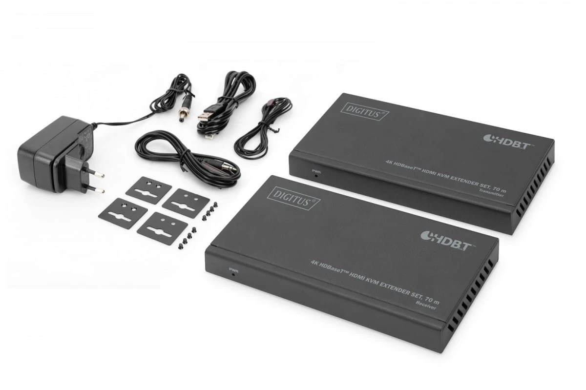 Digitus Przedłużacz/Extender KVM HDMI+USB HDBaseT 70m 4K30Hz HDCP 2.2 PoC (Power over Cable) audio IR zestaw