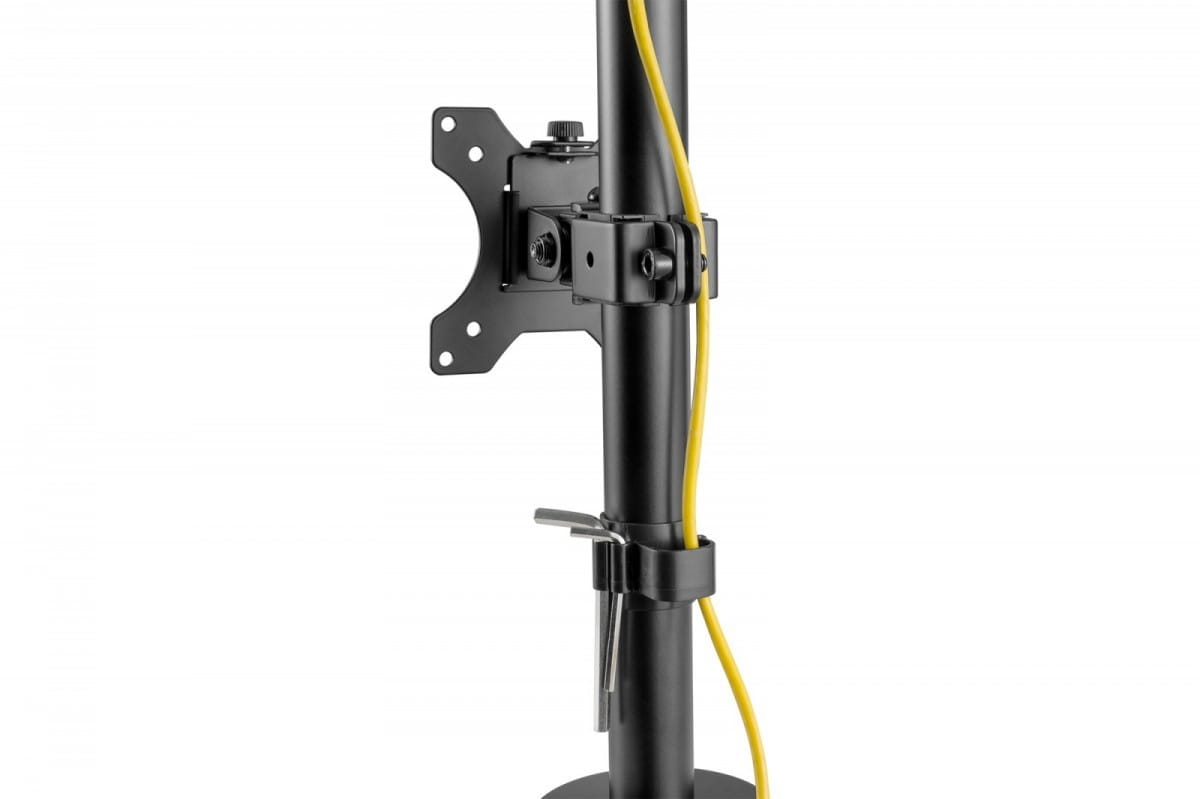 Pozostałe parametry: Zamknięcie typu quick release: Za pomocą wkrętu można zamocować lub odłączyć płytę VESA podczas montażu/demontażu Kompatybilność ze standardem VESA: 75 x 75, 100 x 100 Materiał: stal, tworzywo sztuczne Powierzchnia: lakierowanie proszkowe Liczba monitorów: 2 Maksymalna waga monitora: 8 kg Dwie opcje montażu: zarówno zacisk stołowy, jak i drążek z przelotką wchodzą w zakres dostawy