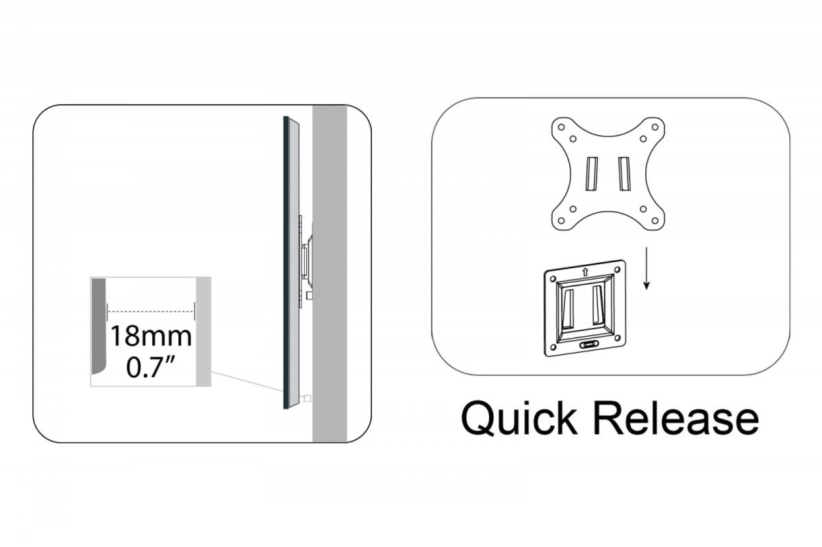 Niewielka odległość od ściany (18mm) pozwala na eleganckie zawieszenie wyświetlacza.