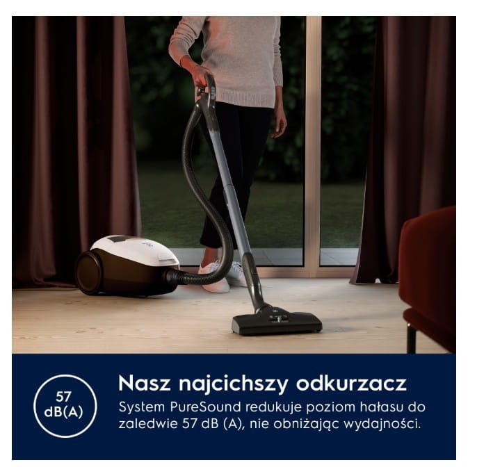 Nasz najcichszy odkurzacz, zaledwie 57 dB(A)*