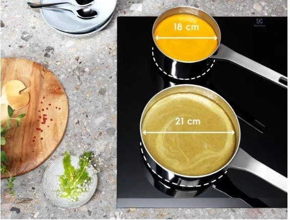 Strefy grzejne Infinite dostosowują się do rozmiarów Twoich garnków lub patelni niezależnie od ich wielkości, zapewniając najlepszą wydajność. Ciesz się efektywnym gotowaniem.