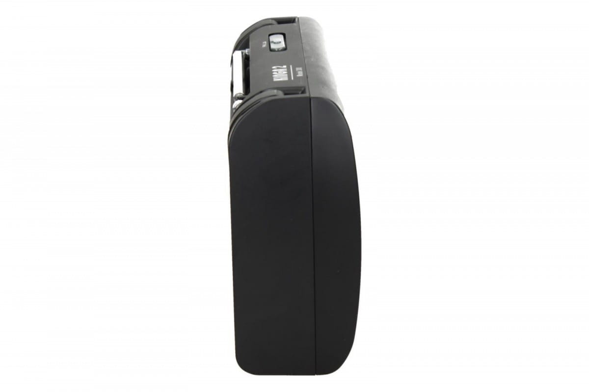 Przenośny odbiornik radiowy z wyświetlaczem LCD.