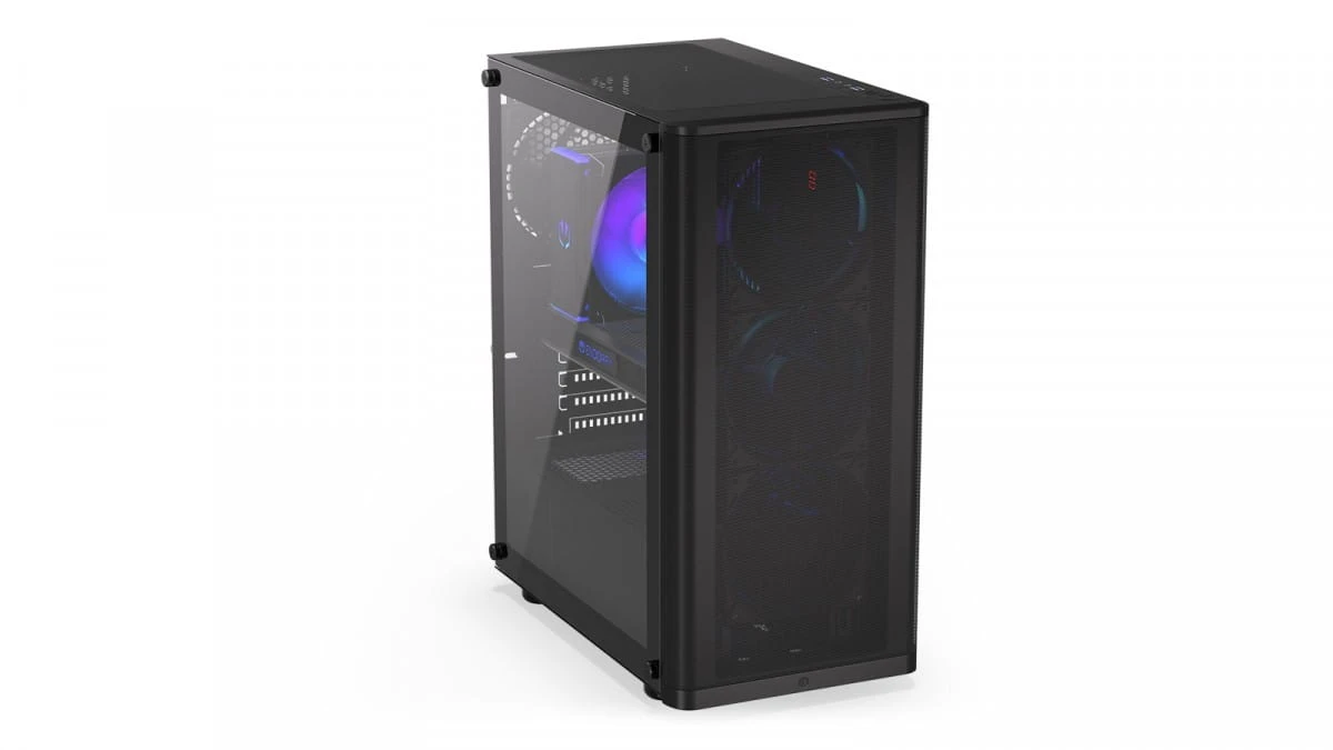 Na zewnątrz ENDORFY Ventum 200 Air też jest niezłym hardkorem. Ma bok z hartowanego szkła, który zjawiskowo eksponuje komponenty i dobrze je zabezpiecza. Do tego front z drobno perforowanej blachy (otwory poniżej 0.9 mm średnicy) wpuszcza do środka świeże powietrze i zatrzymuje wszystkie paprochy.
