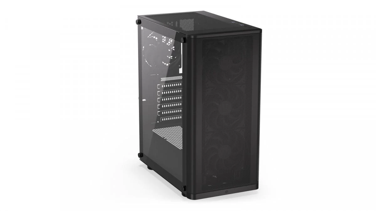 Uprzedzając pytania dla równowagi daliśmy mu design z przyszłości. W Ventum 200 Air na spokojnie zamontujesz płytę główną w pełnym rozmiarze ATX i 3 dyski 2.5" (albo 1 dysk 3.5" i 2 dyski 2.5) i aż 7 wentylatorów.