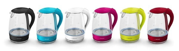 Szklany, bezprzewodowy czajnik elektryczny. Podświetlenie diodami LED podczas gotowania wody. Unikalny, ponadczasowy kształt i piękna niebieska poświata gotującej się wody pasują do każdego wnętrza i wystroju kuchni. Wykonany z wysokiej jakości żaroodpornego szkła z wbudowaną płytą grzewczą. Łatwe stawianie czajnika na podstawie. Wygodne i bezpieczne otwieranie pokrywki przyciskiem na rączce.