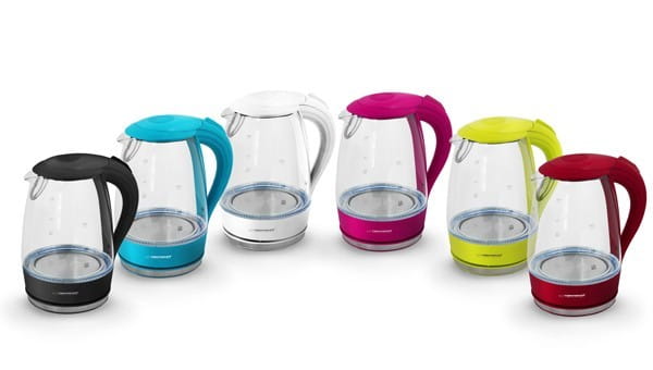 Szklany, bezprzewodowy czajnik elektryczny. Podświetlenie diodami LED podczas gotowania wody. Unikalny, ponadczasowy kształt i piękna niebieska poświata gotującej się wody pasują do każdego wnętrza i wystroju kuchni. Wykonany z wysokiej jakości żaroodpornego szkła z wbudowaną płytą grzewczą. Łatwe stawianie czajnika na podstawie. Wygodne i bezpieczne otwieranie pokrywki przyciskiem na rączce.
