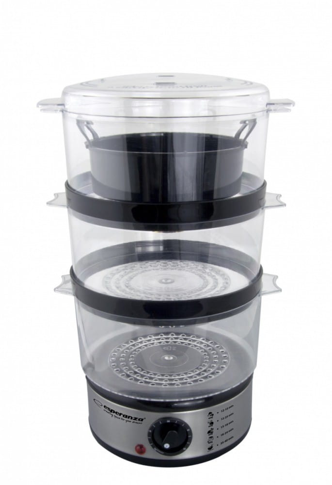 Parowar Esperanza STEAM VOLCANO to niezastąpione urządzenie w każdej kuchni. Pozwala szybko przygotować nawet kilka dań w tym samym czasie, zachowując przy tym ich naturalny zapach i smak.