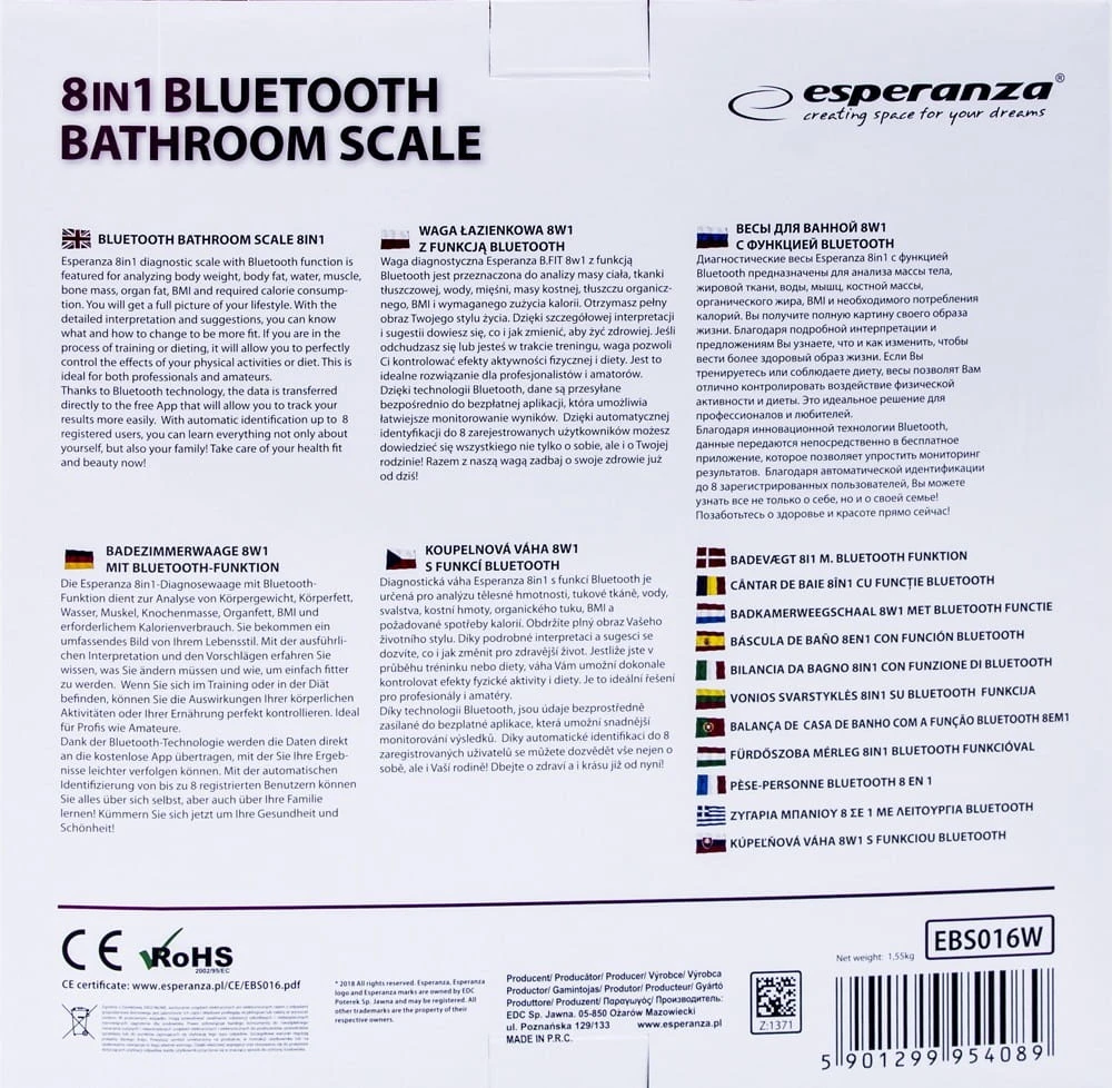 Esperanza WAGA ŁAZIENKOWA 8W1 Z FUNKCJĄ BLUETOOTH B.FIT BIAŁA