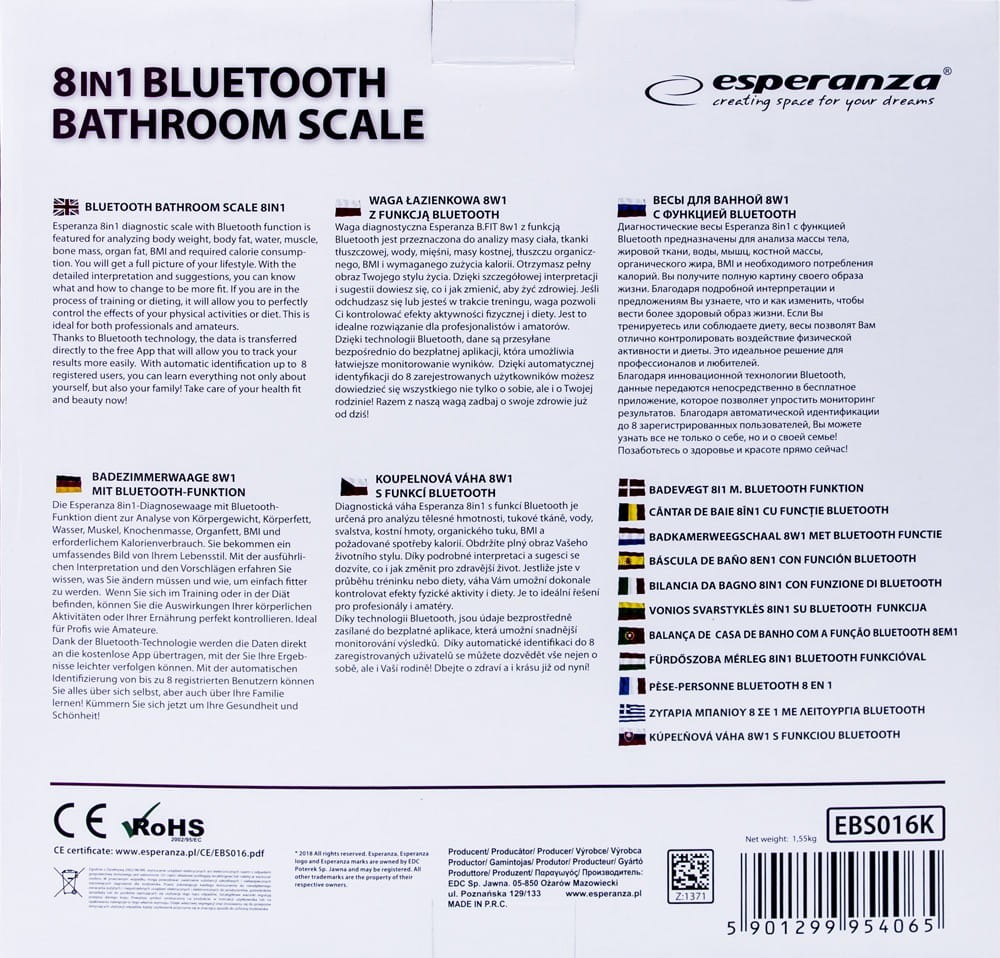 Esperanza WAGA ŁAZIENKOWA 8W1 Z FUNKCJĄ BLUETOOTH B.FIT CZARNA